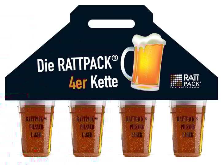 NEU: Die RATTPACK® 4er Kette: Der RATTPACK® Becherträger ist ideal, um mehrere Getränke gleichzeitig zu tragen – perfekt für Festivals und Fußballabende.